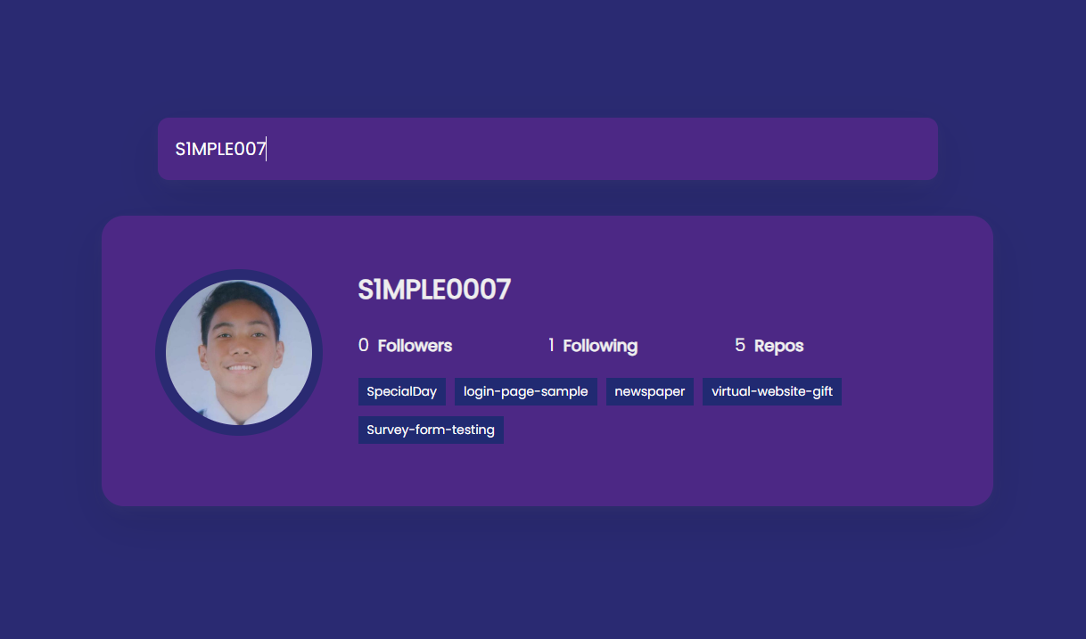 In this project you can search the nicknames of your friends in Github to check their repositories even without in the github app